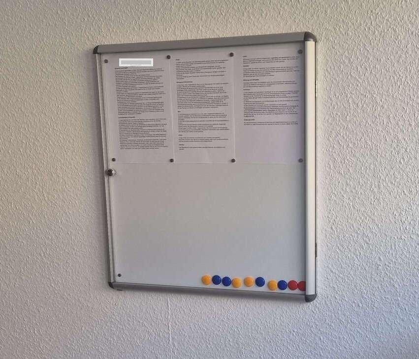 Die Master-of-Boards-Schaukästen sind besonders flach und verfügen über einen stabilen Alurahmen mit abgerundeten, verstärkten Ecken. Die Innenwand der Aushangkästen ist mit Markern beschriftbar und magnetisch. Mithilfe der mitgelieferten Magnete können – abhängig von der Größe des Schaukastens – bis zu 9 Blätter des Formats DIN A4 befestigt werden. Die Tür aus stabilem Acrylglas ist abschließbar.
